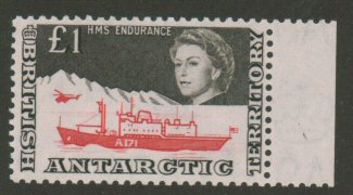 Lot 26 - British Antarctic Territory British Antarctic Territory, 1969, M.S. Endurance and Helicopter, £1 red & brownish black (Scott 24), margin copy, o.g., never hinged, Very Fine. SG 15a. Scott $160.....Suggested Bid