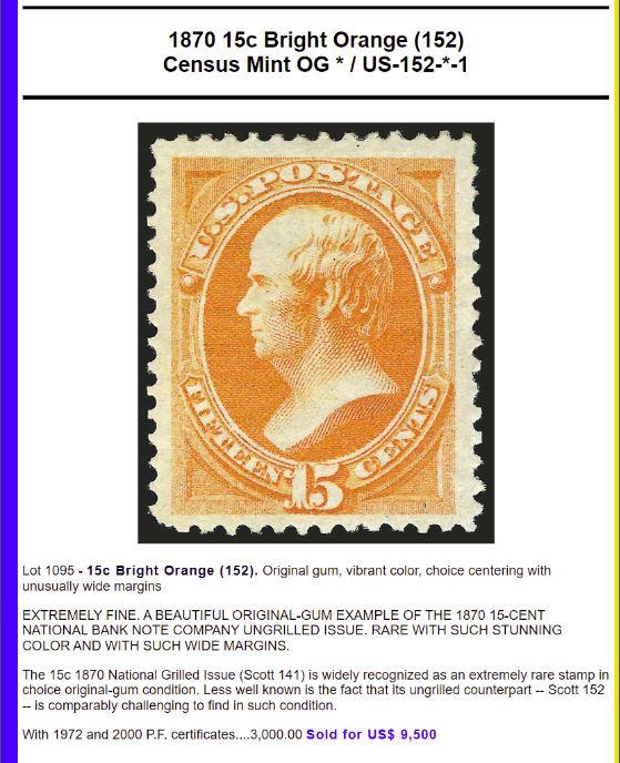 1870 15c Bright Orange (152) - Digital Handbook to stamps in never hinged, original gum, used, multiples, pairs and on cover.