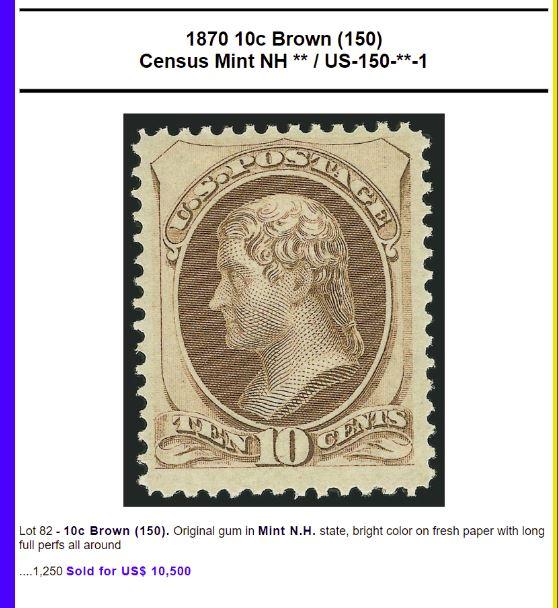 1870 10c Brown (150) - Digital Handbook to stamps in never hinged, original gum, used, multiples, pairs and on cover.