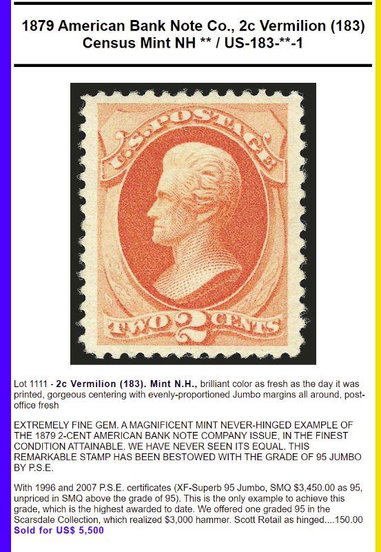 to a SAN Live bidder for $1,350,000 + the buyers commission -- this is 2nd place on the all-time highest prices paid using Live Bidding. The bidder was asked if he wanted to be on the phone, and he said, "No I'm fine with StampAuctionNetwork® Live".See the top prices paid by SAN live bidders.