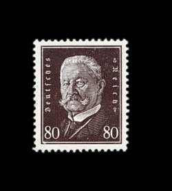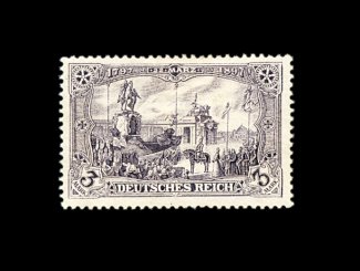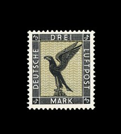 2450 og 102 image#102, 1920 3M Black violet, watermark circles, attractive mint single, well centered and surrounded by full even perforations, clear sharp impression, o.g., h.r., very fine; a scarce stamp missing from most collections and far more elusive than its relatively modest catalog value would imply; signed H. Bloch and accompanied by his 1982 Friedl certificate (Michel #96W; €2,500). (Image) 1,450.00