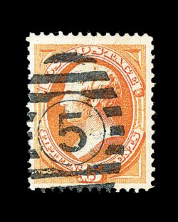 324 O image#165 var., 30c Greenish black, a select used example of this scarce and distinctive shade variety which is specifically listed in Scott, exceptionally well centered and margined, rich luxuriant color, light face-free segmented cork cancel, extremely fine; 1999 PF certificate specifically identifying this as the greenish black shade. (Image) 110.00