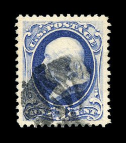 338 O image#182, 1c Dark ultramarine, select used example, extraordinarily large and perfectly balanced margins, deep rich color on bright paper, unusual cancel, extremely fine; a surprisingly tough stamp to find in this gem used condition; 2000 PSE certificate. (Image) 3.50