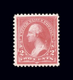 730 nh 250 image#250, 2c Carmine, Ty. I, striking mint single, featuring enormously large margins all around and being wonderfully well centered within them, full clean perforations, plus its color is especially vibrant while its impression is unusually crisp on clean white paper, o.g., n.h., extremely fine gem; 1993 PF certificate. (Image) $77.50