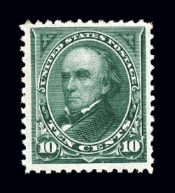 739 og 258 image#258, 10c Dark green, incredibly fresh and crisp mint single, possessing strong rich color and impression on pristine white paper, quite well centered within large margins, o.g., barest trace of hinging (if any), choice very fine; 1984 PF certificate for a block of four, this being the top right stamp. (Image) $300.00