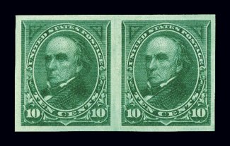 759 og 273a image#273a, 10c Dark green, imperforate, horizontal pair, large even margins all around, rich color, o.g., lightly hinged, extremely fine; 1992 PF certificate; ex-Floyd. (Image) $350.00