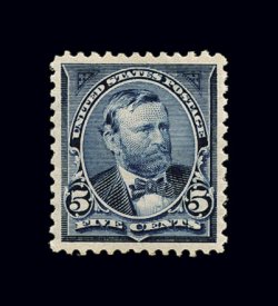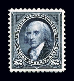 767 og 277a image#277a, $2.00 Dark blue, exceptionally well centered and margined, deep luxuriant color and a razor-sharp impression, slightly disturbed o.g., choice very fine. (Image) $1,100.00