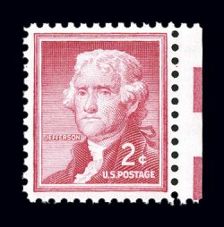 981 nh 1033a image#1033a, 2c Carmine rose on silkote paper, right sheet-margin single, bright and fresh, o.g., n.h., very fine; photocopy of a 1999 PF certificate for a block of four, this being the top right stamp. (Image) $600.00