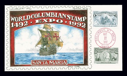 991 FDC 2624-29 #2624-29, 1c-$5.00 Columbians cplt., group of first day covers, includes complete sets of souvenir sheets on Anagram, Artmaster, Colorano Silk, Criscuoli, Pugh (handpainted), and S&T (both U.S. and Portugal) cachets, a set of singles with Artcraft cachets, set of singles on six Huehl handpainted FDC's, set of singles on six Ziola Powell handpainted, three David Dube handpainted cachets including two that join together to make a map of Columbus's voyage, set of singles on replica Goldsmith cards, the KMC Venture folder, and a few other items, very fine. Est. 500-750