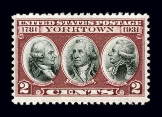 998 nh 703b image#703b, 2c Yorktown, dark lake and black error of color, choice mint example, well centered, o.g., n.h., very fine; few of the examples of this often misidentified error are found in such premium condition; 1995 PF certificate. (Image) $725.00