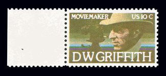 1031 nh 1555a image#1555a, 10c D.W. Griffith, engraved brown omitted, left sheet-margin single, o.g., n.h., very fine and scarce. (Image) $625.00