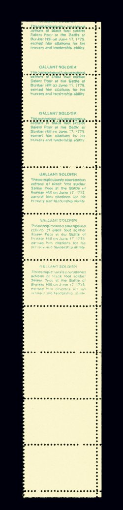 1032 nh 1560a image#1560a, 10c Salem Poor, back inscriptions omitted, vertical strip of ten containing four errors (the bottom four stamps), o.g., n.h., very fine. (Image) $800.00+
