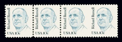 1039 nh 1853c image#1853c, 10c Richard Russell, horizontal pair, imperforate between, one such pair in a horizontal strip of four, o.g., n.h., extremely fine; only 10 pairs exist. (Image) $2,000.00