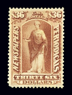1194 og PR113 image#PR113, $100.00 Purple, a particularly choice mint example of this scarce high value, fresh with rich luxuriant color, well centered, full clean o.g., lightly hinged, extremely fine; select examples of the high values on unwatermarked paper are particularly elusive; 2003 PF certificate. (Image) $3,250.00