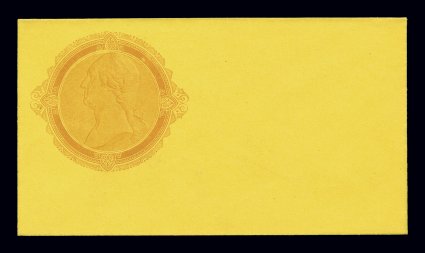 1300 E Turner Essay Ty. C imageTurner Essay Type C, (2c) Washington, die impressions of the central design portion on envelopes, 137x77mm, three different including brown on canary, green on white and red on canary, all envelopes on wove paper and each impression in a different location on the envelope, center, right and left respectively, fresh and very fine. (Image) Est. 100-150