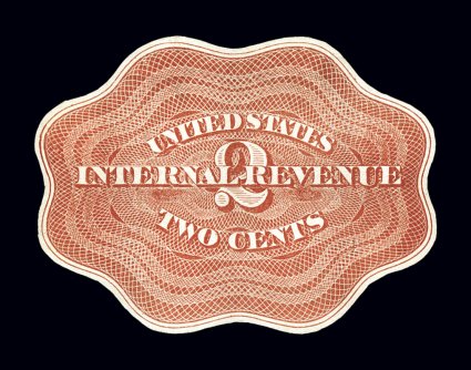 1353 c RN-A11 image#RN-A11, 2c Orange, "Tapeworm" of one full and 53 partial impressions, New York, New York, on 1865 "Mechanics' National Bank" specie clerk's statement, 53 banks listed at left corresponding to 2c tax for each, full document, extra clean and fresh with the one horizontal fold as found on all of these, very fine and an especially nice example of this scarcer early form before the additional three banks were added. (Image) $1,250.00