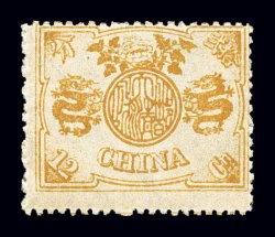 1587 og Chan #22M-30M imageChan #22M-30M, 1897 Dowager Mollendorf special printing cplt., a fresh and handsome set, printed on thicker unwatermarked paper than the regularly issued stamp, colors are strong and bright, similar to the second printing in shade, but usually a bit more intense, full o.g., three low values with h.r., rest are lightly hinged, overall quite well centered, very fine; this issue was printed under order of the head of the Statistical Department of Chinese customs with official sanction, 5,000 sets were printed to be given to high ranking officials and foreign diplomats, listed in a footnote in Scott under #24n (Chan $1,780.00). (imagea) (imageb) (Image) $1,500.00