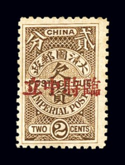 1695 og Chan #DU5-6 imageChan #DU5-6, 1912 1c-2c Brown Foochow "Provisional Neutrality" overprint, a particularly fresh examples of these extremely rare unissued values, colors are bright and fresh, full clean o.g., 1c lightly hinged, 2c slightly disturbed from hinging, fine-very fine; the 1c and 2c Brown values had been placed in use just prior to the fall of the Manchu dynasty and were the current postage dues in use replacing the previous blue stamps, they were given the horizontal "Provisional Neutrality" overprints, but for some reason were not issued, both Dr. Ma and Dr. Chan consider these values to be especially rare; an exceptionally nice set of these terribly illusive values; mentioned in Scott in a footnote after #J24 but not priced. (imagea) (Image) Chan $18,000.00