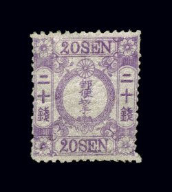 1719 og 17 image#17, 1872 20s Lilac, on native wove paper, mint single, quite well centered, typical erratic perfs. of this early Cherry Blossom, normal crackly o.g. causing some usual paper wrinkles, very fine of this (JSCA #13; Y80,000). (Image) $350.00