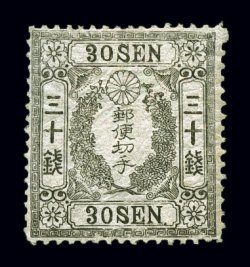 1720 ng 18 image#18, 1872 30s Gray, on native wove paper, attractive unused example of this scarce high value, quite well centered and full perforations, typical light paper wrinkles from original crackly gum that has subsequently been removed, very fine (JSCA #14; Y90,000). (Image) $450.00