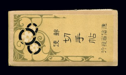 1761 BK JSCA #B2 var. imageJSCA #B2 var., 1907 Chrysanthemum complete booklet consisting of two 2s Yellow green, six 4s Rose red (JSCA #BP4; the scarcer of the two shades) and three 10s Prussian blue handmade booklet panes of six, wonderfully fresh, the stamps with fine-very fine centering or better, full even perforations on all the panes, pristine o.g., n.h., cover is clean and crisp, extremely fine and rare booklet; a premium booklet with the scarcer 4s shade. (Image) JSCA 350,000Y