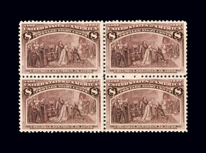 667 og/nhbl 236 image#236, 8c Columbian, mint block of four, the left stamps are very well centered and margined, intense color and impression, o.g., n.h. except top right stamp very lightly hinged, overall a very fine block; 2005 PF certificate. (Image) $605.00+