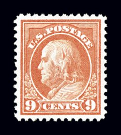549 nh 415 image#415, 9c Salmon red, uniformly large margins all around, brilliant color, immaculate o.g., n.h., an extremely fine gem. (Image) $120.00