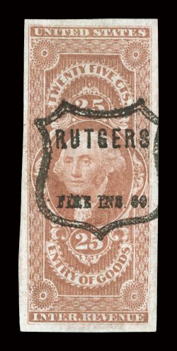 railroad circular handstamp at top, extremely fine gem 2003 PF cer#R100c, $25.00 Mortgage, a lovely used example of this scarce stamp, being exceptionally well centered and margined, deep rich color and impression, light strike of Naugatuck railroad circular handstamp at top, extremely fine gem; 2003 PF certificate; ex-Kingsley. (Image) $200.00
