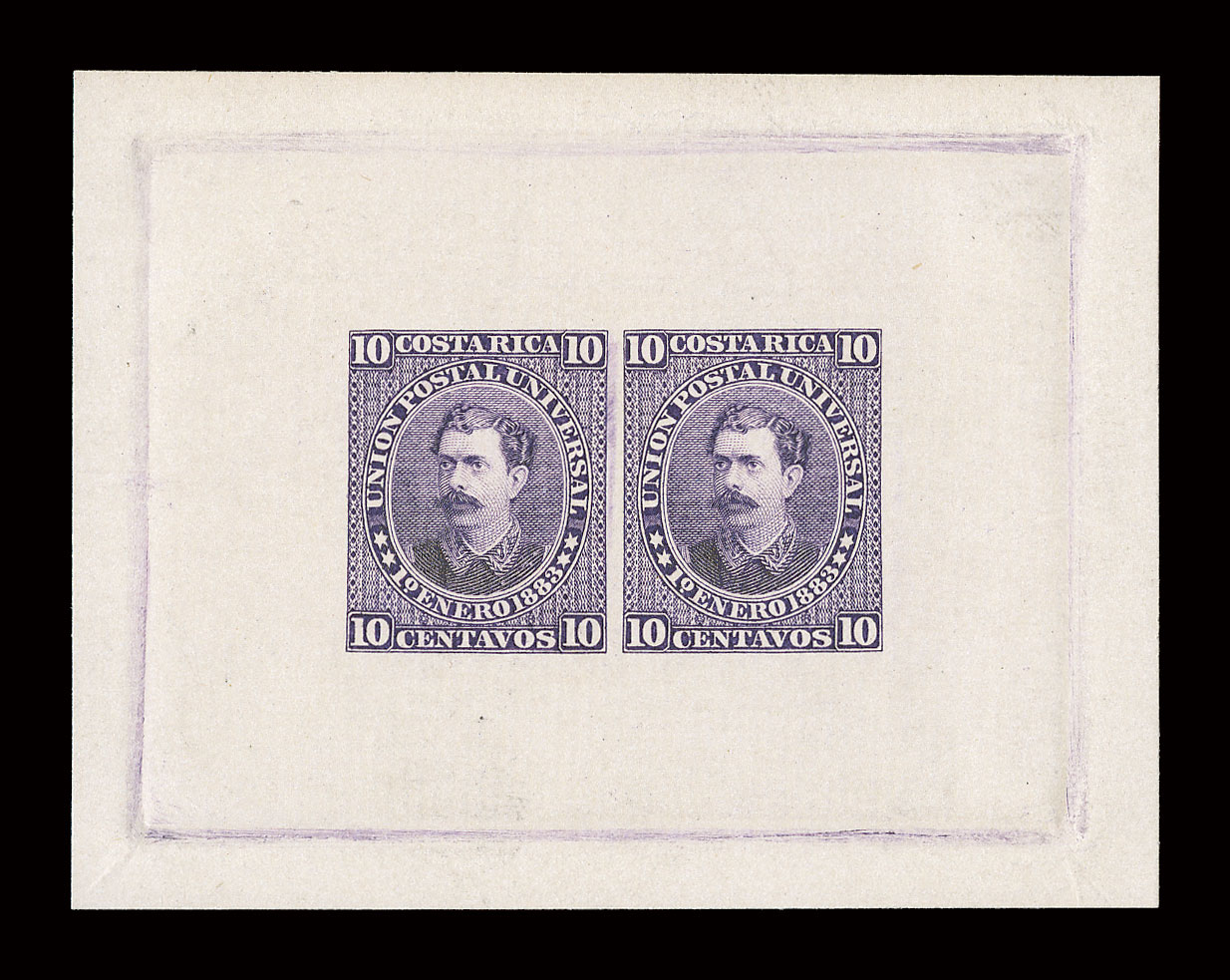 in red, flap repair just barely goes into the top of the cover but do1877 Official cover, sent to Manuel de J. Jimenez, the son of President Jesus Jimenez, with crisp "San Jose, Set 7, 1877" c.d.s. at top, flap with national Coat of Arms printed in red, flap repair just barely goes into the top of the cover but does not affect the postmark, fine; reportedly the only recorded example of a free frank used in the period of the first issue stamps. (Image) Est. $300-400