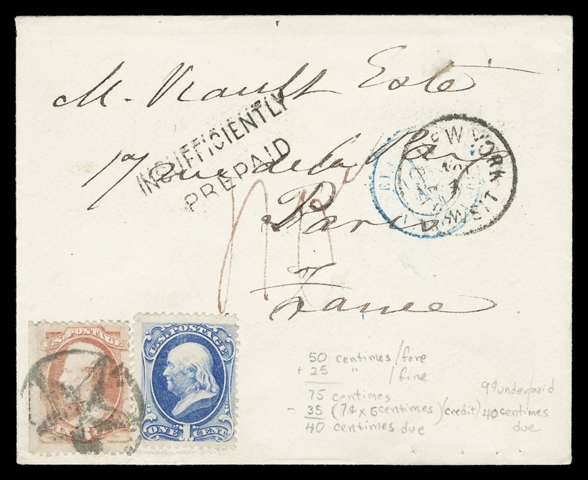 276 c 137, 148, 159 #137, 148, 159, The postal history balance of 40 covers bearing the 6c Lincoln National Bank Note Company issues, grilled and ungrilled, and the 1873 Continental Bank Note Company issues, a select group of covers all having been acquired by Mr. Ainsworth for their unusual usages, cancellations and overall eye appeal, as most were placed in his exhibition collection, begins with 5 scarce covers bearing the grilled 6c stamp (catalog $750.00) each, both domestic and overseas usages, followed by an excellent group of 19 ungrilled 6c covers, with a wonderful range of usages, combination frankings with other values (up to the 30c) and destinations, and concluding with 16 covers franked with the 6c 1873 issue, again with uncommon usages and destinations, some typical cover flaws, but as a whole the condition is well above average and contains many select covers, fine-very fine; an exceptional group either for the Bank Note specialist or cover retailer. Est. $3,000-4,000
