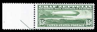 653 nhu C13 C13, 65c Graf Zeppelin, excellent centering within large margins, strong rich color, o.g., n.h., extremely fine 2006 PF certificate (XF 90).#C13, 65c Graf Zeppelin, excellent centering within large margins, strong rich color, o.g., n.h., extremely fine; 2006 PF certificate (XF 90). (Image) $425.00