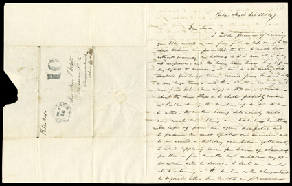 363 c   Army of the West, Chihuahua, March 6th 1847, manuscript military endorsement and 10 rate on folded letter with integral address leaf written on captured stationery of the