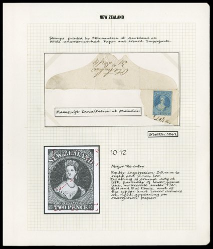 Wellington, the second with traces of margins in places and crisply cancelled "18" at Otago; an unusual pair. provenance: Gerald Ellott (imagea)
