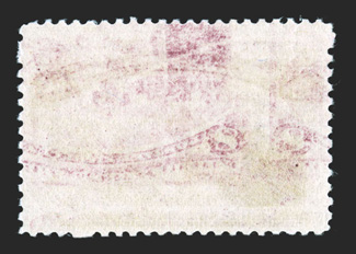 second impression of the design on the gum side, which is inverted to#236 var., 8c Columbian, Printed on Both Sides, One Impression Inverted to the other, a pristine mint example of this controversial variety, with a rather clear (right reading) second impression of the design on the gum side, which is inverted to the normal printing on the front, strong rich color, o.g., never hinged, nearly very fine; despite the presence of a 1979 PF certificate, which accompanies this stamp, there is some dispute over whether this is a true double printing or some sort of offset, nonetheless a highly collectible variety for the inverted printing collector. (imagea) (Image) Est. $300-400