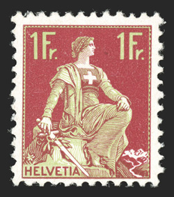 mentioned on the certificate), very fine clear 1998 Rellstab certif#5, 1850 5r Black and red on dark blue, with frame around cross, Type 27, four large margins, deeply rich colors, blue "P.P." cancel, tiny tear in the left margin at bottom (not mentioned on the certificate), very fine; clear 1998 Rellstab certificate (Zumstein #15I; SF1,500). (Image) $1,250.00