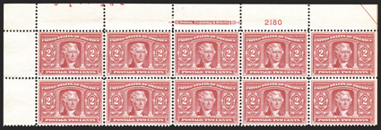 selvages, beautiful rich colors throughout, o.g., n.h., fine-very fine a#323-327, 1c-10c Louisiana Purchase cplt., a handsome and wonderfully well matched set of bottom margin (2c is a top) imprint and plate number blocks of ten, with full side selvages, beautiful rich colors throughout, o.g., n.h., fine-very fine; a rare and most impressive complete set of plate blocks of ten. (imagea) (imageb) (imagec) (imaged) (Image) $12,400.00