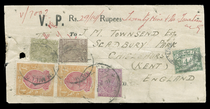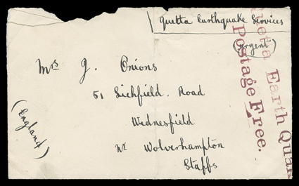 3236 c   British India substantial 20th century cover accumulation of well over 1,500 covers and cards housed in sleeves, all franked by KEVII to KGVI issues, including domestic usages, small town usages, foreign destinations with a wide variety of frankings and rates, air mail, registered, picture post cards, postal stationery, postage due, etc., many better noted including Quetta earthquake, Mt. Everest expedition, complete set covers, high value frankings and the like, mixed condition, most are fine-very fine. (imagea) (imageb) (imagec) (imaged) (imagee) (imagef) (imageg) (imageh) (imagei) (imagej) (imagek) (imagel) (imagem) (imagen) (imageo) (imagep) Est. $5,000-7,500