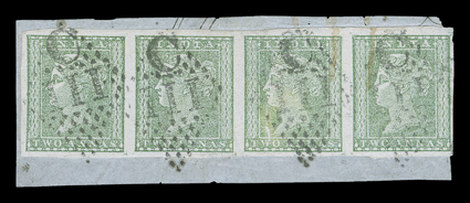used in late 1856 and 1857 after Great Britain declared war on PersiaField Force/Persia, 5 August 1857 split circle datestamp with manuscript "4as" rate on native cover to Bombay, Bombay arrival backstamp, very fine and scarce; this postmark was used in late 1856 and 1857 after Great Britain declared war on Persia in November, 1856 because her treaty obligations had been violated by the occupation of Herat on the Afghan border, operations began in the Gulf by occupying the island of Karak and then disembarking an Indian Expeditionary Force near Bushire, the Persians sued for peace when Bushire fell, however owing to poor communications subsequent operations were carried out in ignorance of this. (Image) Est. $500-750