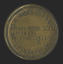 one of these exceedingly rare encased postage stamps 2008 PF certific#EP105, L.C. Hopkins & Co., Cincinnati, 10c Green, full intact mica with only a slight hint of a scratch, the stamp with unusually deep color, very fine; a handsome example of one of these exceedingly rare encased postage stamps; 2008 PF certificate. (imagea) (Image) $6,000.00