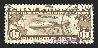983 nh C14 C14, $1.30 Graf Zeppelin, well centered within large margins, rich color, pristine o.g., n.h., choice very fine 2006 PF certificate.#C14, $1.30 Graf Zeppelin, well centered within large margins, rich color, pristine o.g., n.h., choice very fine; 2006 PF certificate. (Image) $800.00