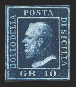 fine several are signed Diena and also accompanied by a 1989 Bolaffi c#10/18, 1859 ½g-10g Ferdinand II, set of all seven values, margins range from full to touching the frame lines in places, all with strong colors, full original gum, fine-very fine; several are signed Diena and also accompanied by a 1989 Bolaffi certificate for the set; we have cataloged these as the least expensive shade and printing (Sassone #1/14; €6,950). (imagea) (imageb) (Image) $3,955.00