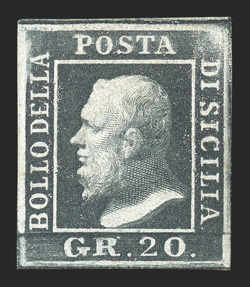 Ç6,5000).#11, 1852 1Sc Rose, scarce mint single, full to large margins all around, attractive color, full original gum, very fine; 1976 Bolaffi and 1990 E. Diena certificates (Sassone #11; €6,5000). (Image) $4,000.00