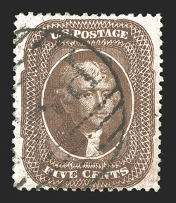127 O 36 36, 12c Black, plate I, select used example, particularly well centered and fresh, criss-cross grid cancel, extremely fine 1998 PSE certificate.#36, 12c Black, plate I, select used example, particularly well centered and fresh, criss-cross grid cancel, extremely fine; 1998 PSE certificate. (Image) $375.00