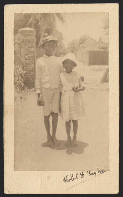 mounted on card and signed by the photographer, Violet F. Taylor, andS.G. #104-06E, 1923 Child Welfare issue, original photographs used for the engraved vignettes of the issued stamps, all three, 52x82mm, 45x66mm and 62x102mm respectively, each mounted on card and signed by the photographer, Violet F. Taylor, and taken at her home in Goodwin Park, South Park Camp, Kingston, very fine; accompanied by a mint set of the issued stamps (Scott #B1-3E). (imagea) (imageb) (Image) Est. $500-750