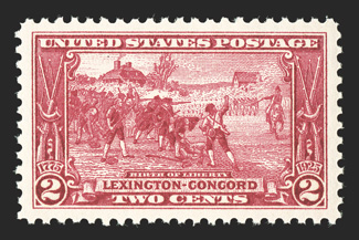 487 nhu 617-19 617-19, 1c-5c Lexington-Concord cplt., each stamp is extraordinarily well centered and margined, vibrant colors, o.g., n.h., extremely fine a handsome and well matched set each