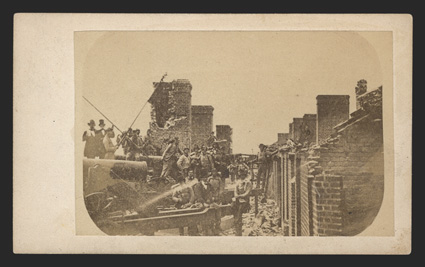 34   Fort Sumter: Reoccupation A great carte-de-visite Photograph of the United States flag being raised once more over Fort Sumter, dated in pencil on recto April 14, 1865, by R.C.