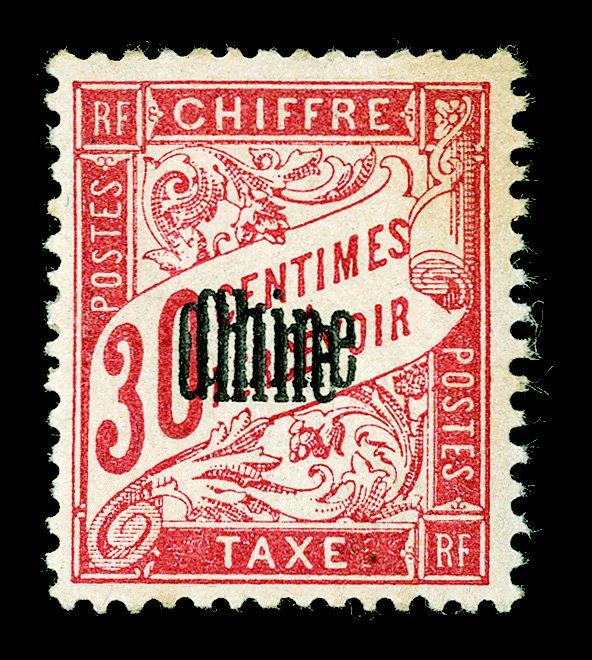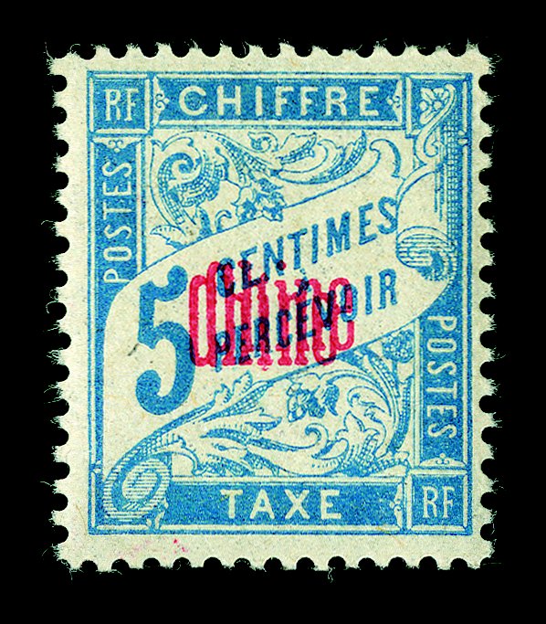 15 og Yvert #TT1a, 5a, 6a ImageYvert #TT1a, 5a, 6a, 1901 "Chine" Overprint on 5c Light blue, 30c Carmine and 50c Lilac Postage dues, double or triple overprints, o.g., l.h., 30c h.r., fine-very fine; 5c and 50c signed Roumet and 30c signed A. Brun (Scott #J1a, J5a, J6a; $435.00). (imagea) (imageb) (Image) €600