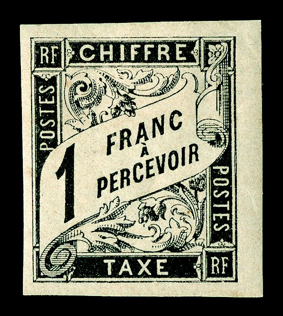 185 nh Yvert #TT14 ImageYvert #TT14, 1884 5Fr. Black postage due, seldom seen post office fresh mint example, four large margins, pristine o.g., n.h., extremely fine (Scott #J14a; $425.00 for hinged). (Image) for hinged €500