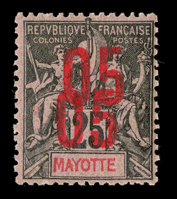 778 ng Yvert #5 ImageYvert #5, 1889 "25" Surcharge on 30c Brown on yellowish, unused example from the second overprinting, bright and fresh, very fine; only 150 stamps are believed to have been surcharged; signed A. Brun (Scott #8; $2,500.00). (Image) €3,400