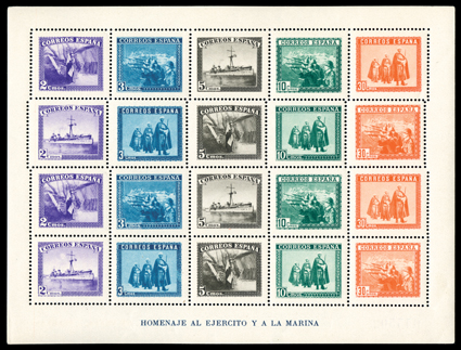 942 nh B108K, B108L Image#B108K, B108L, 1938 4P Honoring the Army and Navy souvenir sheets, perf. and imperf., o.g., n.h., both fresh and very fine (Edifil #849-50; €372). (imagea) (Image) 292.00